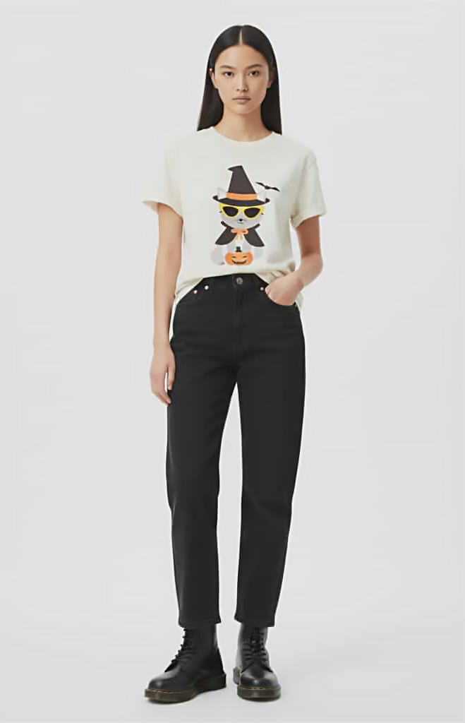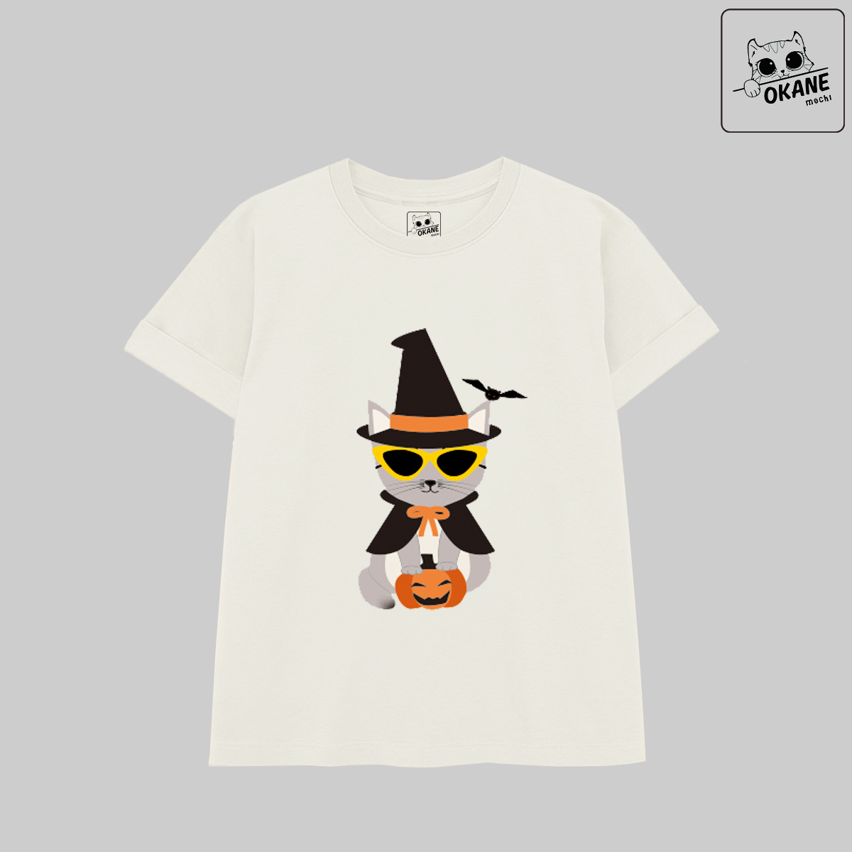 Cat's Haloween print Regular Loose T-Shirt with Roll Up sleeves