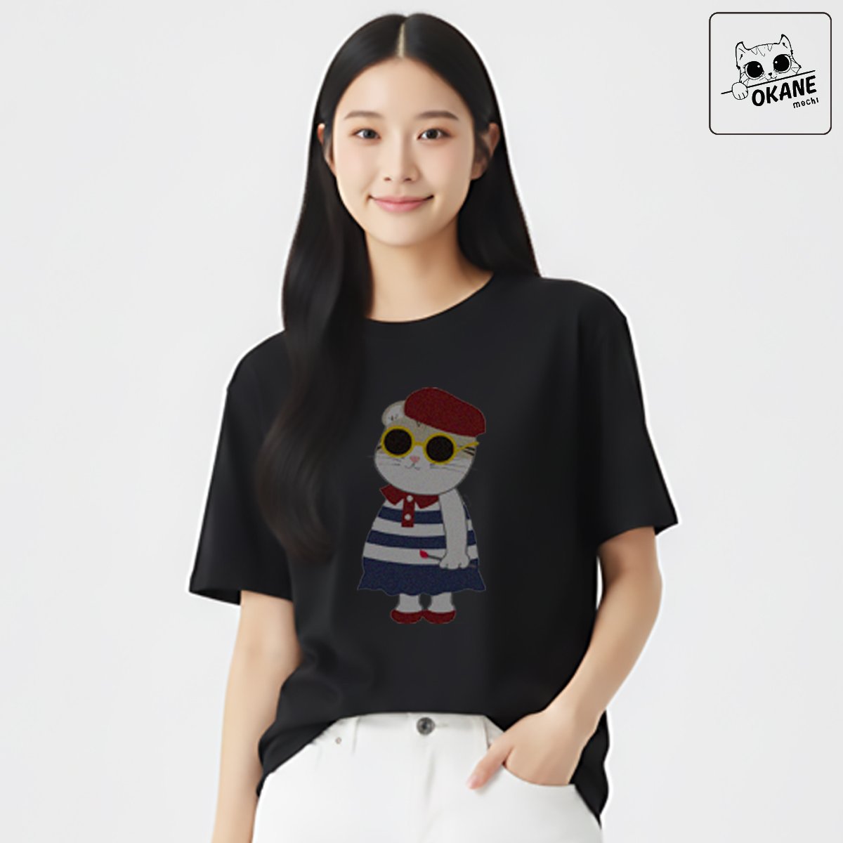 Boxy fit tee, thick & soft fabric, with Cat  print.